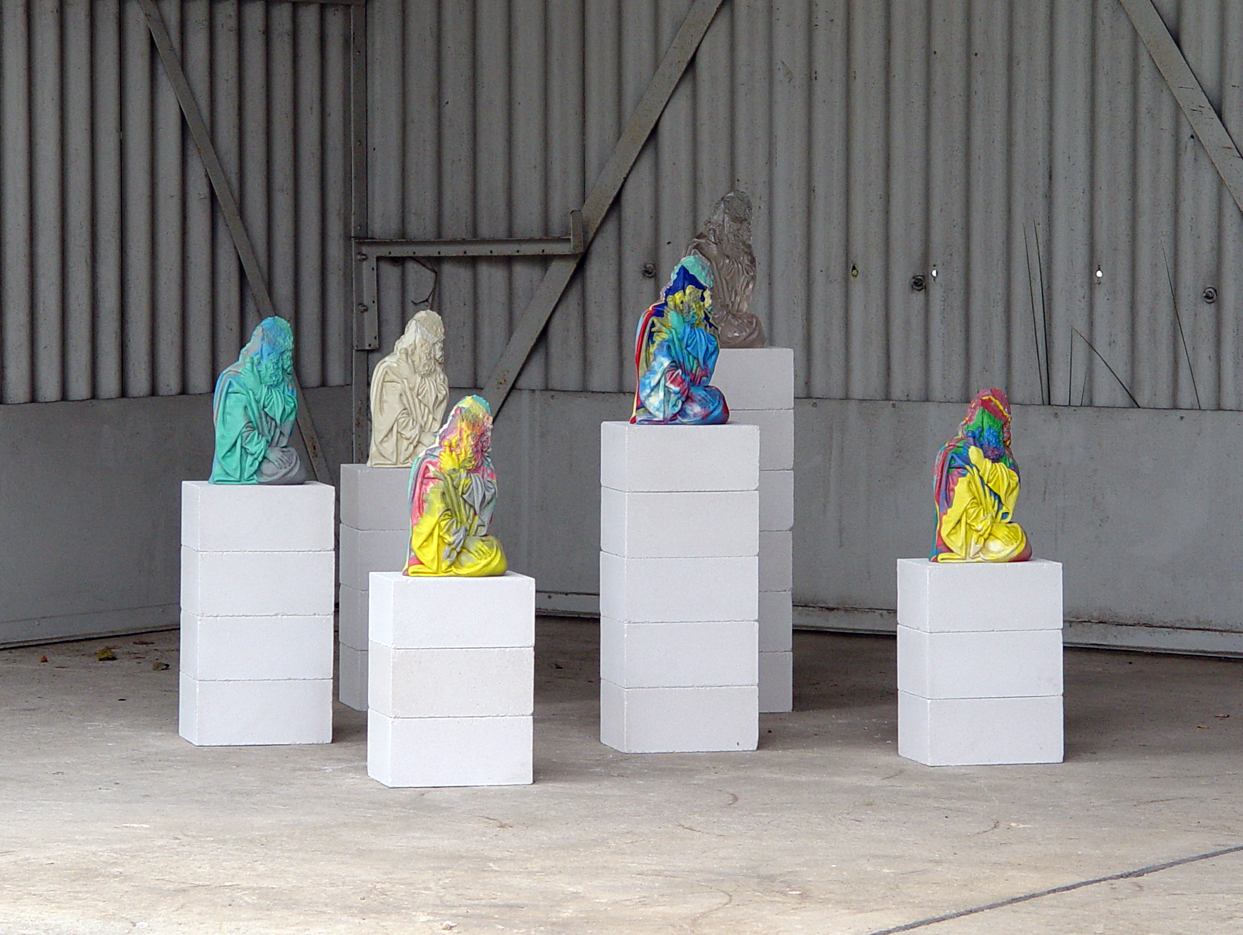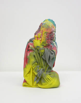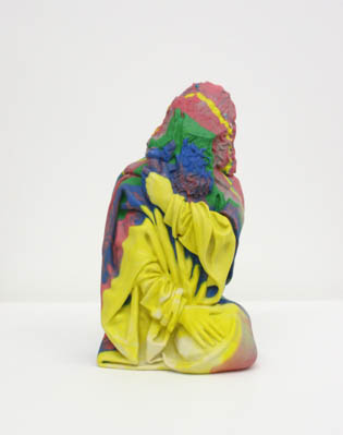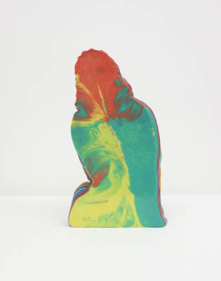 Versions, Oliver Laric's second solo show at Seventeen, circulates around both historical and contemporary ideas relating to image hierarchies. Central to the exhibition is a suite of polyurethane sculptures. In collaboration with 3D modellers, Laric has translated a reformation damaged icon from St Martin's Cathedral, Utrecht, into a silicone mould from which a number of casts have been made. Each is identical in size and form, distinction coming only from their varied pigmentation. For Laric, these sculptures, their multiplicity, reflects a viable productive principle in iconoclasm. After the conceptual event of iconoclasm, after the physical inscription of that event as damage on the very surface of these icons, the formal hierarchy between the original and its modification is fundamentally undermined. Instead there is equipoise; no single truth, no original; no derivative; just versions...*