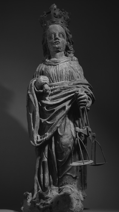 Marienfigur vom Baldachin des Uhrengehäuses am Basler Rathaus (1510/11), die 1609 in eine Justitia umgearbeitet wurde